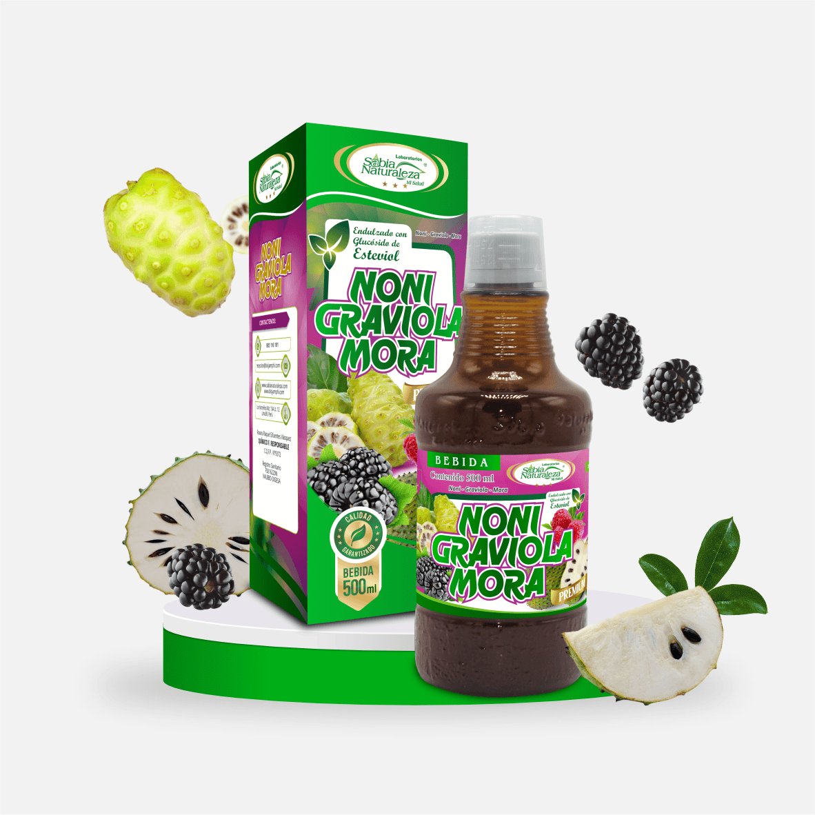 Composición: Noni, Graviola, Sabor a Mora, Endulzado con Glucósido de Esteviol.
